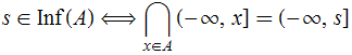 Escrevamos para o conjunto dos ínfimos. Então, a definição de ínfimo assume o seguinte aspecto: